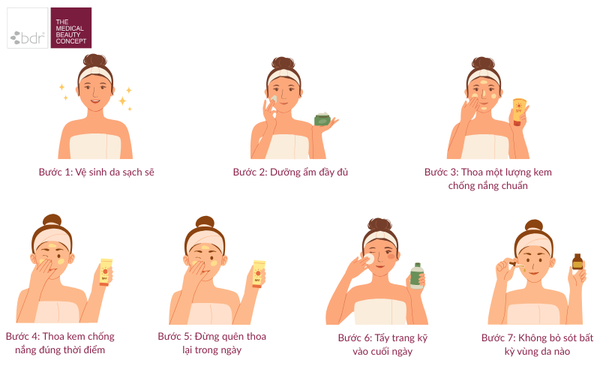 Để kem chống nắng phát huy hiệu quả tốt nhất, việc thoa đúng cách là yếu tố quyết định. Dưới đây là 7 bước bạn cần tuân thủ mỗi ngày: